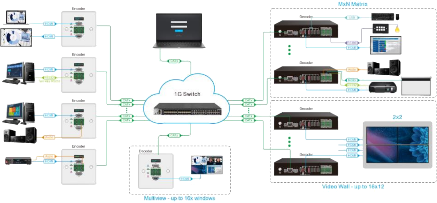 • รองรับการถอดรหัสหลายช่องสัญญาณ สามารถแสดงได้สูงสุด 16 เอาต์พุตต่อจอ พร้อมการ Roaming และ Overlay