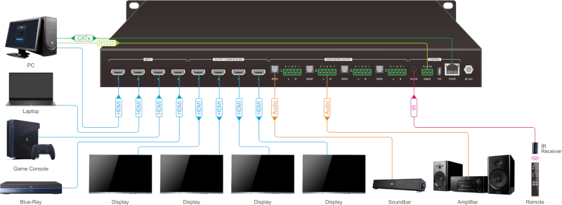 เครื่องสลับสัญญาณ HDMI แบบ Matrix แบบเร็ว เข้า 4 ออก 4 (HDMI 2.0)
