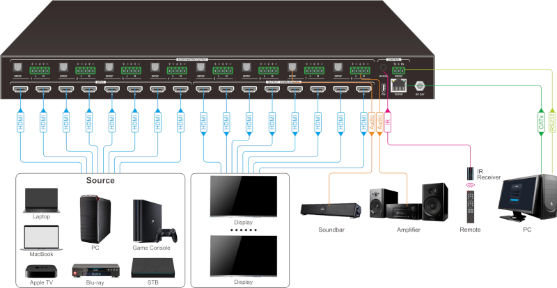 เครื่องสลับสัญญาณ HDMI แบบ Matrix แบบเร็ว เข้า 8 ออก 8 (HDMI 2.0)